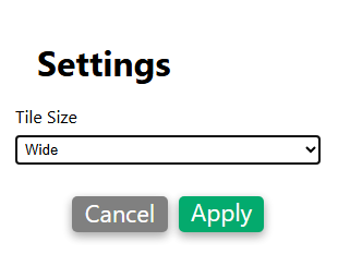 For apps with configurable options like Tile Size or a key supplied by the vendor, click the setting cog on the app.