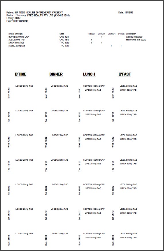 Practicare Foils are printed on adhesive sheets on your Kyocera Laser Printer. They can fit up to 8 medications and 4 dosage timeslots per foil.