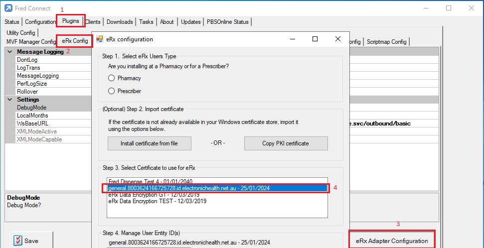 Select the eRx config tab, then click the eRx Adapter Configuration button.