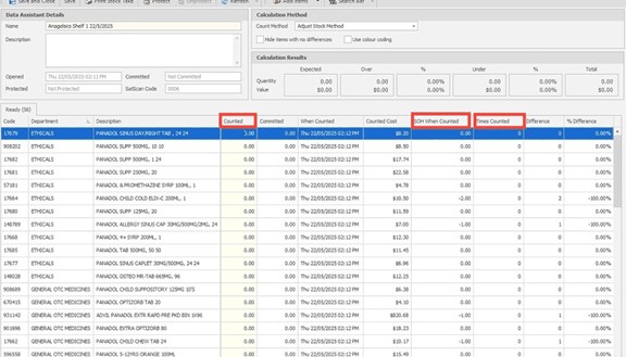 As you are counting true stock on hand, do not forget to include your committed items (scripts waiting, and laybys), when performing your counts.