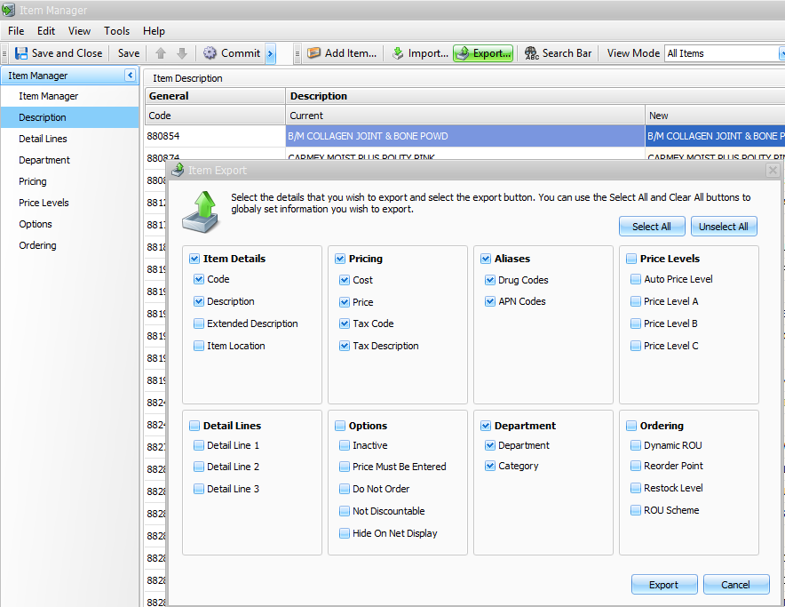 Export Item Manager