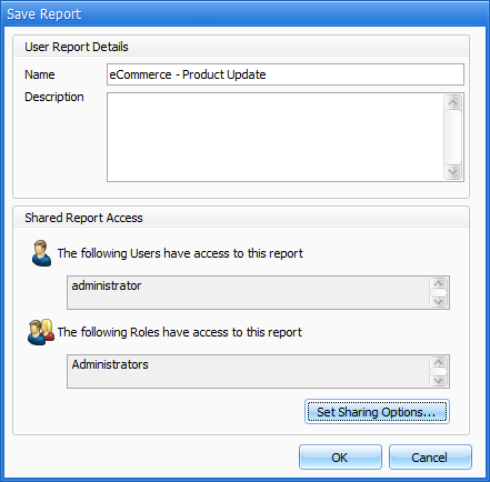 - Name the report and set the Shared Access options as required.