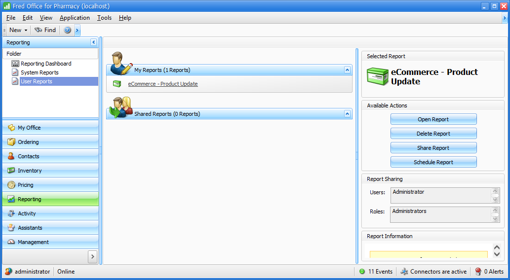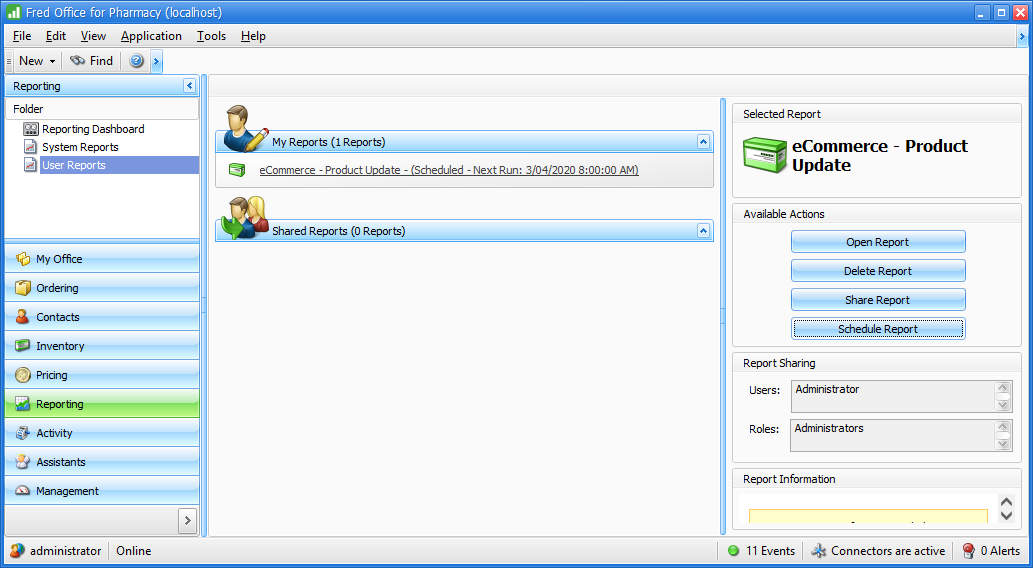 Fred Office Plus allows users to save reports for specific users. These user reports can be configured for automatic emailing.
