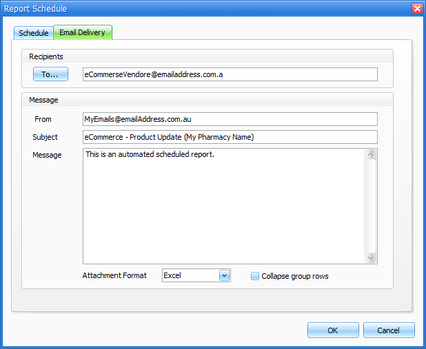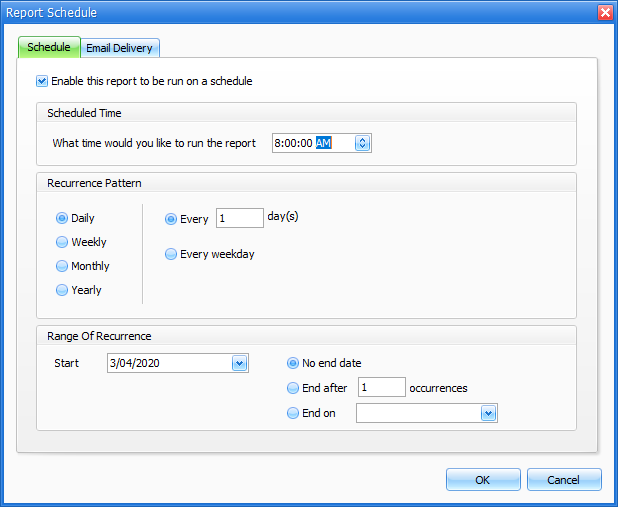 - Once the schedule has been set, you can configure Email Delivery options.