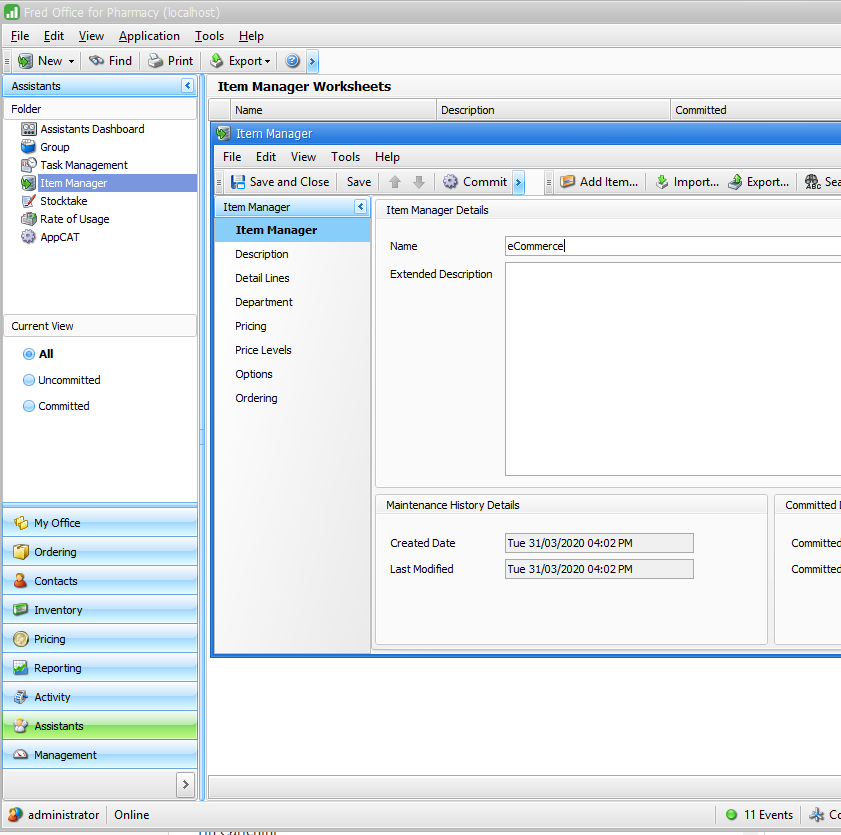 Go to Assistants > Item Manager.