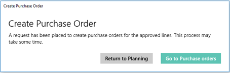 In Planned Orders, a dialog prompt is displayed if the purchase order is not created 60 seconds after tapping Create.