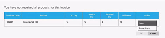 In Invoices, the dialog prompt displayed when committing an imbalanced invoice has been modified, to ensure Create return is selected manually before tapping OK.