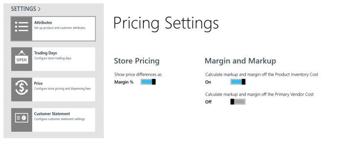 A new toggle has been added in to allow stores to optionally set the Markup and Margin values (recorded in each Product card) to be derived from either the Product Inventory Cost (MAVG) or the Primary Vendor Cost (Last Purchase Cost).