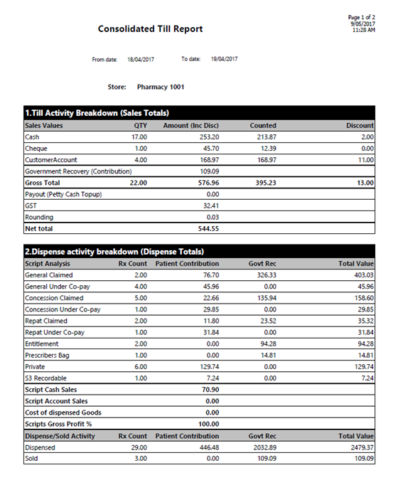 The Daily Totals report runs on multiple pages. It can be exported to .csv, to facilitate its import into other accounting systems.