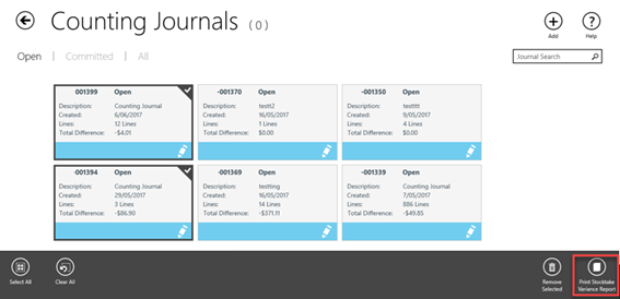- Tap Print Stocktake variance report (in the footer of the Counting Journals screen).